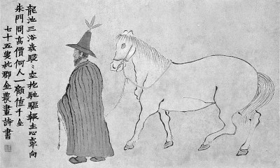 《牽馬圖軸》 (清)金龍畫(huà)作