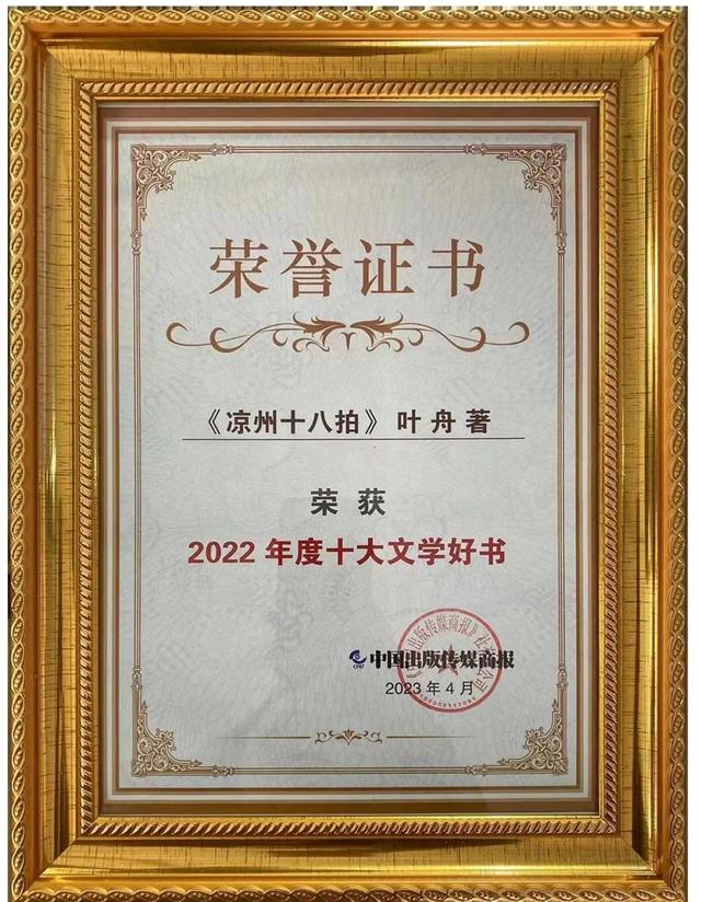 第十一屆春風(fēng)悅讀榜年度頒獎(jiǎng)典禮4月22日在浙江杭州舉辦,著名作家葉舟長(zhǎng)篇小說(shuō)《涼州十八拍》榮獲白銀獎(jiǎng)。此外,4月21日由中國(guó)書(shū)刊發(fā)行業(yè)協(xié)會(huì)、中國(guó)新華書(shū)店協(xié)會(huì)、韜奮基金會(huì)等聯(lián)合發(fā)起的第十屆讀友讀品節(jié)上,《涼州十八拍》入選2022年度十大文學(xué)好書(shū)。