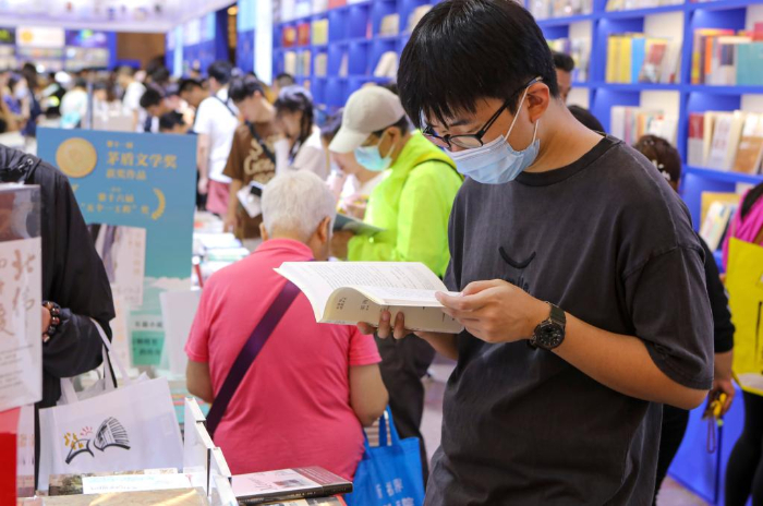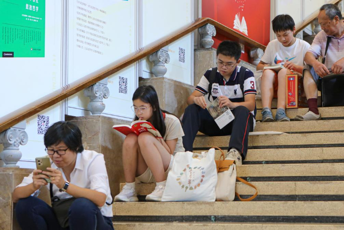 8月16日,讀者在2023上海書展現(xiàn)場閱讀。