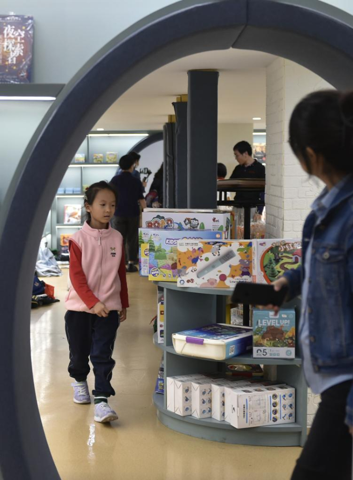 10月18日,一名小學(xué)生在鄭州市緯五路第一小學(xué)校園閱讀中心內(nèi)閱讀。