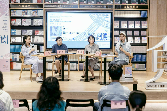 分享會(huì)上,閱讀公益組織“愛(ài)閱公益基金會(huì)”的李文、兒童有聲書品牌“老墨家族”的“墨叔叔”、學(xué)習(xí)困難關(guān)愛(ài)協(xié)會(huì)“學(xué)愛(ài)會(huì)”許倩、讀困家長(zhǎng)社群“飛米力”(本書翻譯團(tuán)隊(duì))主理人鄭楓,四位嘉賓,帶著各自不同的成長(zhǎng)和行業(yè)經(jīng)歷背景,圍繞“不一樣的孩子,不一樣的閱讀”的主題展開(kāi)交流,從不同的角度表達(dá)了他們對(duì)于閱讀障礙的關(guān)切。