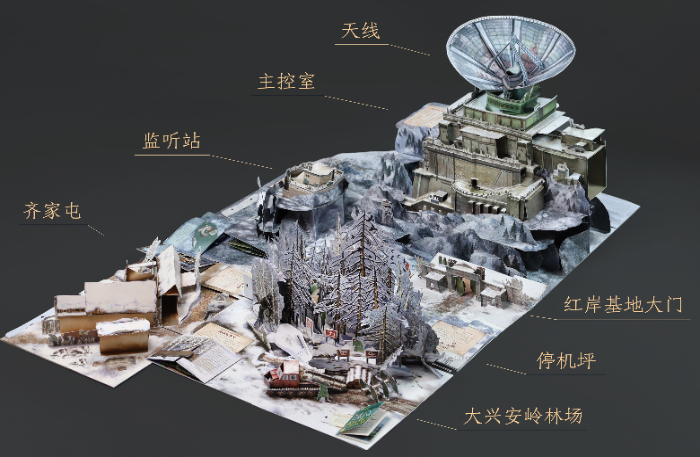 如果說《三體》是關(guān)于宇宙最狂野的想象,那《三體立體書 紅岸基地》就是將這份想象轉(zhuǎn)化為了可觸摸、可視化的閱讀體驗。這本書采用全景展開的裝幀方式,還原從大興安嶺林場、紅岸基地、到齊家屯的整個地圖,全書展開后近1.5平方米,小立體頁和豐富有趣的互動機(jī)關(guān)則暗藏細(xì)節(jié),使故事結(jié)構(gòu)更為完整。為了確保立體書最終呈現(xiàn)出來的效果,在做立體紙藝設(shè)計的時候,施鎮(zhèn)宇挑戰(zhàn)立體紙藝結(jié)構(gòu)畫幅極限,創(chuàng)新性采用二段式結(jié)構(gòu),搭建出約0.5米高的紅岸基地巨型天線,帶來震撼的閱讀體驗。
