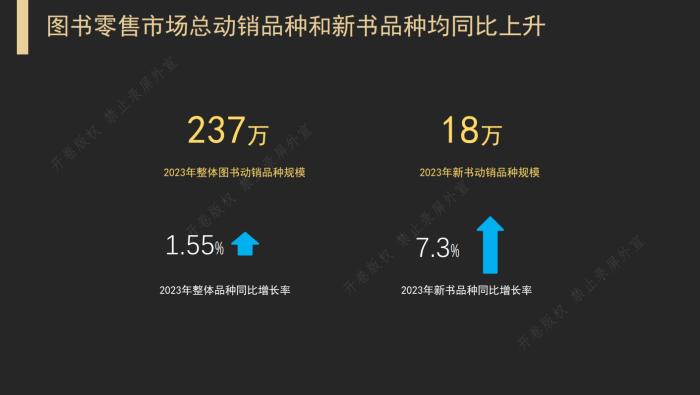 上述《報告》顯示,2023年整體零售市場總動銷品種達237萬種,同比上升1.55%,動銷新書品種達18萬種,同比上升7.3%。