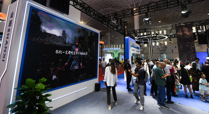 數博會上,國產游戲《黑神話:悟空》備受矚目。山西展團以游戲中“悟空”路線為主題,重點展示了一批介紹山西古建筑、歷史文化遺產的出版物,“悟空拍照區(qū)”成了“熱門打卡地”。
