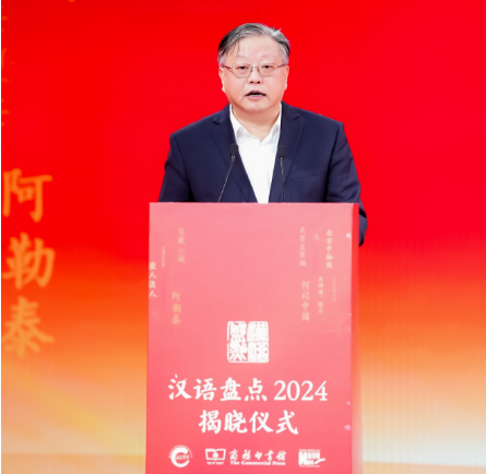 商務(wù)印書館黨委書記、執(zhí)行董事顧青在“漢語盤點(diǎn)2024”年度字詞揭曉儀式上致辭。新華網(wǎng) 發(fā)