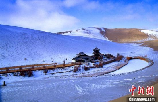 冬天的敦煌月牙泉(資料圖)。甘肅文旅廳 供圖