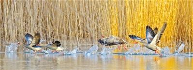 張玉林告訴記者,近年來張掖市高度重視生態(tài)文明建設(shè),采取有效措施改善保護(hù)生態(tài)環(huán)境。通過采取退耕還濕、植被恢復(fù)、生態(tài)補水、圍欄封育、棲息地恢復(fù)、生態(tài)環(huán)境整治等措施,有效促進(jìn)了濕地生態(tài)系統(tǒng)的保護(hù)和恢復(fù),為鳥類遷徙、繁衍提供了良好的生存環(huán)境。由于濕地恢復(fù),甘州區(qū)近年來又在濕地清淤中堆積了許多無人島,這里成了黑翅紅腳鷸、燕鷗的繁殖地。黑鸛、天鵝、白琵鷺在張掖數(shù)量較多,經(jīng)??梢姺N群活動。國家一級保護(hù)動物白尾海雕、玉帶海雕等珍稀動物也常來光顧。