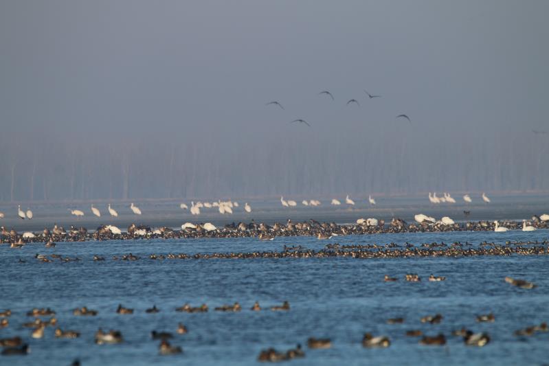 隨著環(huán)境保護、退耕還濕工作的推進,獾子洞濕地面積已經(jīng)達到歷史最大,成為候鳥遷徙的重要驛站,每年春秋兩季,這里都會呈現(xiàn)萬鳥云集、欣欣覓食的生態(tài)場景。“飛時猶如云遮日,落時不見湖邊草”,堪稱世界奇觀。(郭蕾 于勝地、常繼民)
