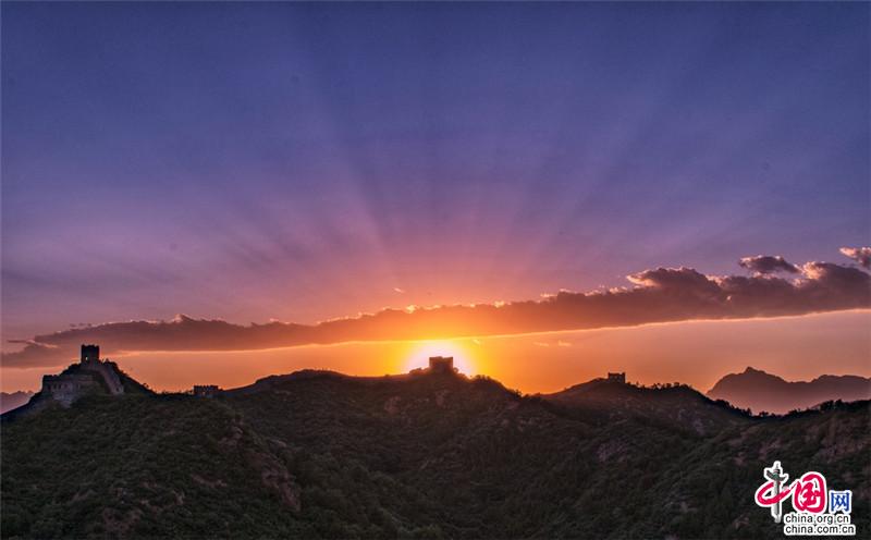 金山嶺長(zhǎng)城,仿佛一部鴻篇巨制,光芒萬(wàn)丈的日出中巨龍飛舞。