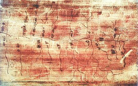 放馬灘考古發(fā)掘出來的第三個(gè)“中國第一”,是西漢初期的書寫紙。它是中國造紙技術(shù),尤其是書寫紙發(fā)明年代不容置疑的鐵證。