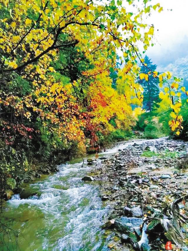 各種顏色的樹葉交織在一起,紅的、黃的、綠的,波濤一樣奔涌、撞擊乃至匯集,就像一幅丹青妙手精心暈染、調(diào)色的畫卷。