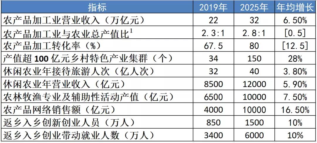 到 2025 年,鄉(xiāng)村產(chǎn)業(yè)體系健全完備,鄉(xiāng)村產(chǎn)業(yè)質(zhì)量效益明顯提升,鄉(xiāng)村就業(yè)結(jié)構(gòu)更加優(yōu)化,產(chǎn)業(yè)融合發(fā)展水平顯著提高,農(nóng)民增收渠道持續(xù)拓寬,鄉(xiāng)村產(chǎn)業(yè)發(fā)展內(nèi)生動力持續(xù)增強。