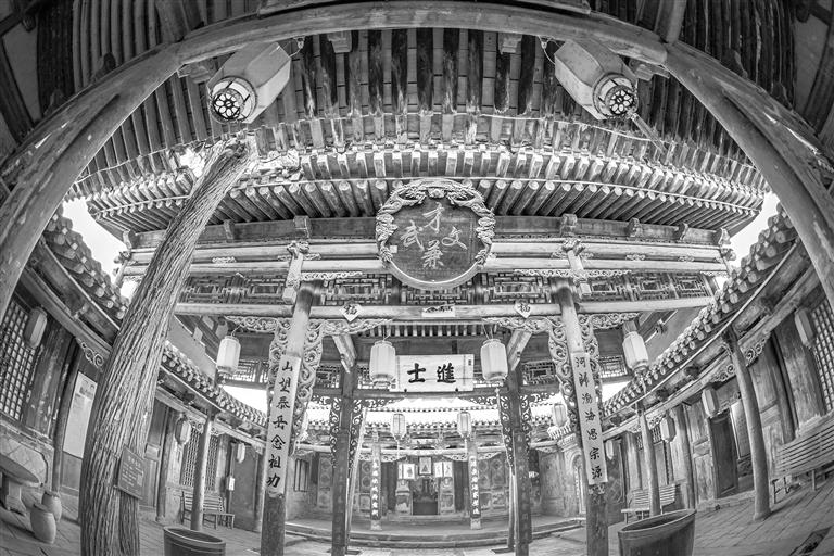 在這里,八仙桌上擺著的文房四寶,依然還飄著淡淡的墨香;墻上的字畫栩栩如生,筆走龍蛇,令人贊嘆;木門、木窗、木桌、木凳,簡樸溫厚如謙謙君子;高懸的匾額,穿透久遠(yuǎn)的歲月,看著它們,仿佛在與歷史對話;抬頭可以看到,這里的椽子是方形的因?yàn)檫@里是給學(xué)生立規(guī)矩傳授知識(shí)的地方,梁和柱子都是圓形的,印證了“無規(guī)矩不成方圓”的道理。