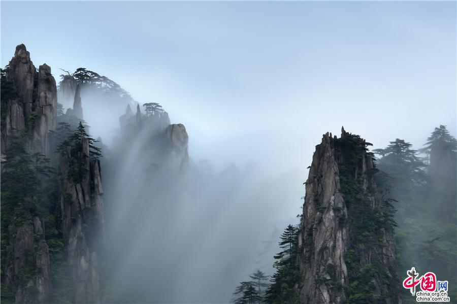 云霧中的黃山,美如一幅幅流動的水墨畫