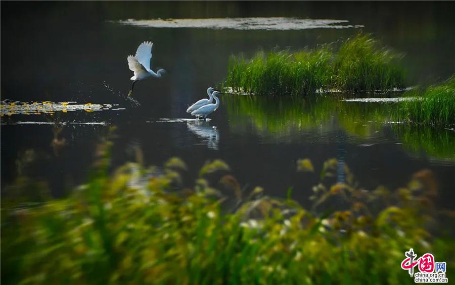 沙湖每年的四月也是最值得期待的。一年一度的國際觀鳥節(jié)總能吸引大批的游客和攝影愛好者,不遠(yuǎn)萬里奔赴一場與濕地候鳥的春之約。成千上萬只候鳥齊飛的場景,讓很多游客在感慨這片土地的神奇魅力之時,也常常熱淚盈眶,人與自然和諧共生的畫面,無疑是對這片土地最好的贊美。在這片廣闊的地域上,金沙、碧水、飛鳥、游魚、遠(yuǎn)山、綠葦相互交織,形成了沙湖春季獨特的自然景觀。