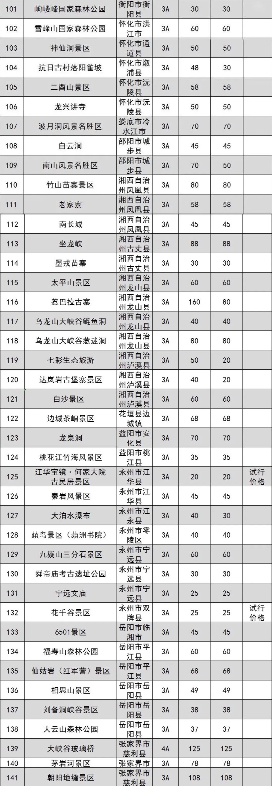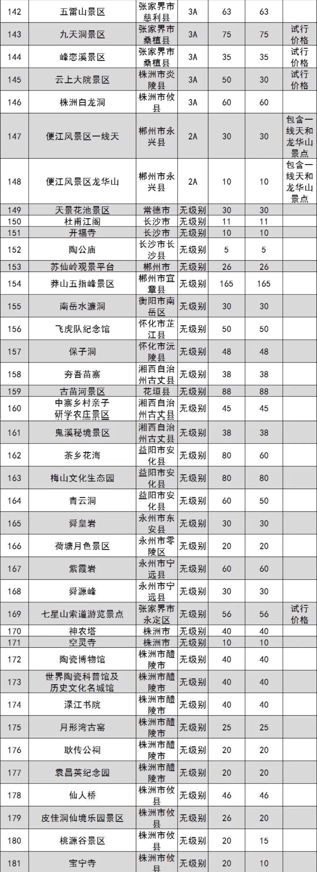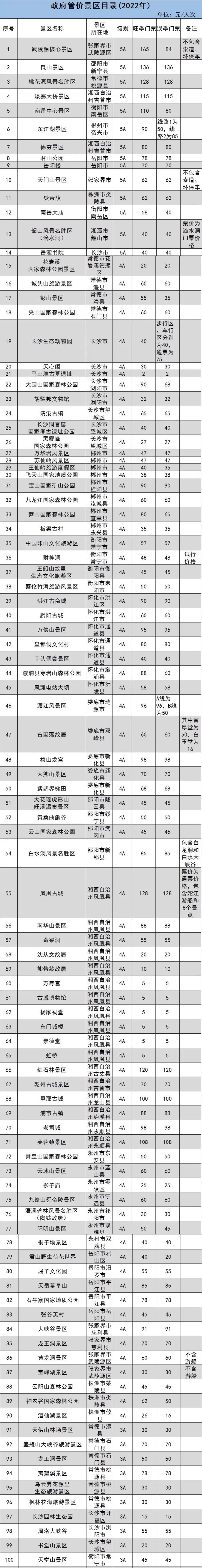 原標(biāo)題:湖南省政府管價景區(qū)2022年門票出爐 共181個