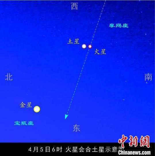 火星土星近距離相會,何時(shí)觀測最佳?各地最佳觀測時(shí)間是日出前70分鐘,觀察方位在東方偏南的低空。屆時(shí),金星是啟明星,十分明亮,視亮度達(dá)到負(fù)4.4星等。在金星的西南面(右上方),可找到土星和火星。4月5日,廣州日出時(shí)間是6時(shí)16分,即廣州在5時(shí)06分前后觀測最佳。如果借助雙筒望遠(yuǎn)鏡觀察,效果更好。(郭軍 李建基)