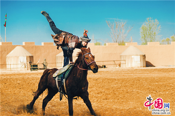 除此之外,游客在景區(qū)擂臺處不僅能夠觀看驚險刺激的市井雜耍,還有每天兩場的樂隊(duì)表演不容錯過。擂臺不遠(yuǎn)處就是今年4月1日全新推出的實(shí)景馬戰(zhàn)《烽火西夏》演出場地,看完雜耍的游客可直接到馬場觀看接下來的演出。