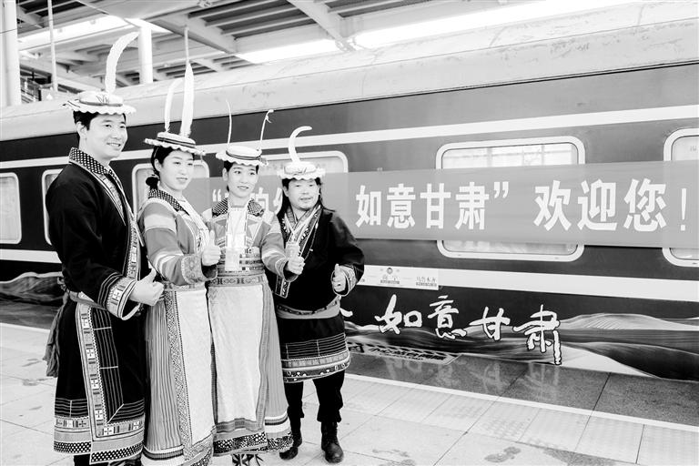 為落實甘肅省“旅游強省”戰(zhàn)略,自2018年開始,依托甘肅境內(nèi)豐富的旅游資源和鐵路客運資源優(yōu)勢,以“一列車、一張圖、一種游”為思路,“環(huán)西部火車游”客運旅游產(chǎn)品上線,讓“列車?yán)@著景點過”變成“火車朝著景點開”,在實現(xiàn)“引客入甘”等方面發(fā)揮了積極作用。2020年,在甘肅省文化和旅游廳的大力支持下,立足疫情常態(tài)化防控背景,“環(huán)西部火車游”實現(xiàn)跨區(qū)域王牌旅游產(chǎn)品“三級跳”:“五一”期間開通隴南到敦煌的旅游線路,打通“如意甘肅”全境全線;8月份,打通四川、重慶、陜西、寧夏、青海等西部6省區(qū)市跨省游小環(huán)線;九月底,隨著由甘肅文旅牽頭的“環(huán)西部火車游”跨區(qū)域旅游產(chǎn)品從廣西一路開到新疆,一條綠色長龍,儼然一艘“陸上郵輪”,串起西部旅游黃金線,打造出一條“坐著火車游西部”的文旅經(jīng)濟(jì)消費帶。