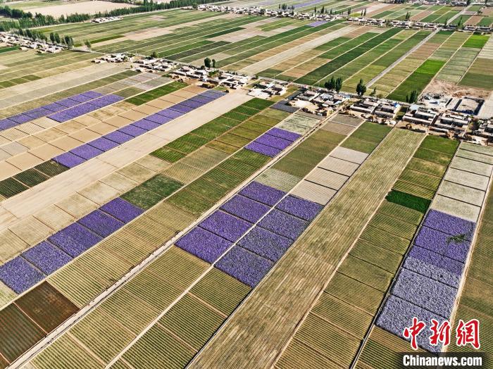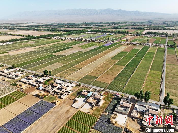 夏日時(shí)節(jié),甘肅省張掖市高臺縣駱駝城鎮(zhèn)紅新村和梧桐村的田野間,農(nóng)舍青青、遍野吐翠,阡陌縱橫間五彩斑斕,構(gòu)成一幅美麗的田園風(fēng)光畫。