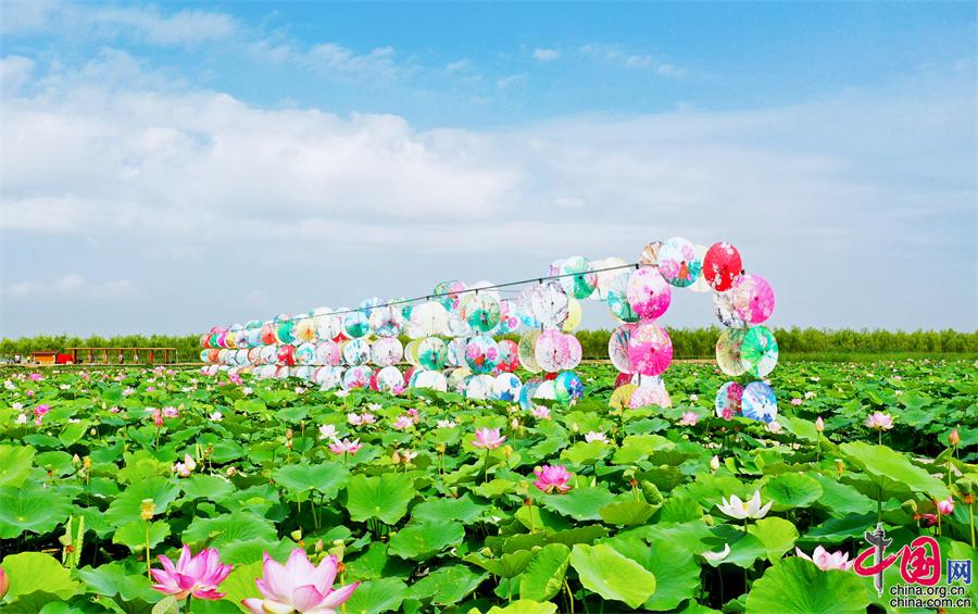 七八月份,正是荷花競相盛開的季節(jié),寧夏沙湖景區(qū)利用淺灘和鹽堿地種植觀賞性荷花,在湖東游線深處打造了西北沙漠旁的“萬畝荷花苑”,為景區(qū)夏日增添一抹韻味。成片的荷花在西北的驕陽下熠熠生輝,構(gòu)成“接天蓮葉無窮碧”的塞上秀美荷塘景觀。