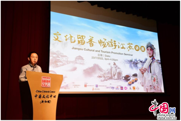 由江蘇省文化和旅游廳主辦、江蘇旅游(新馬)推廣中心協(xié)辦,新加坡中國文化中心、中國駐新加坡旅游辦事處及新加坡江蘇會(huì)全力支持的“文化留香·暢游江蘇”講座,于2022年7月23日(星期六)在新加坡中國文化中心4樓劇場(chǎng)舉行。江蘇省文化和旅游廳副廳長李川通過連線參與本次活動(dòng),新加坡旅游局助理署長(國際司)陳蕙敏、中國文化中心兼中國駐新加坡旅游辦事處主任肖江華、江蘇省駐新加坡經(jīng)貿(mào)代表處主任代表沈立國,以及來自新加坡文化藝術(shù)界、旅游界、商界、社團(tuán)、新聞媒體及市民大眾等逾200名觀眾現(xiàn)場(chǎng)出席活動(dòng)。