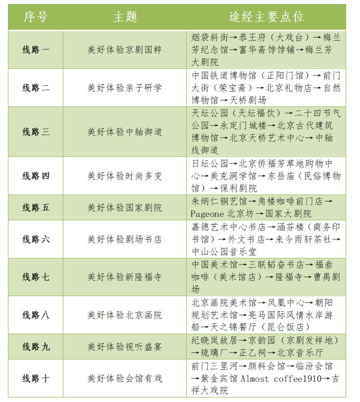 本次精心設(shè)計推出的10條“漫步北京-美好體驗藝術(shù)之旅主題游”線路覆蓋了十三藝節(jié)北京各主要展演場館,結(jié)合場館特點和周邊文旅資源,以展演場館為核心,以慢行交通系統(tǒng)為紐帶,以文化場所、旅游景點、網(wǎng)紅打卡地為節(jié)點,主題鮮明、規(guī)劃合理,帶領(lǐng)市民游客觀演出、看展覽、賞風(fēng)景、品美食,共享“藝術(shù)的盛會、人民的節(jié)日”。