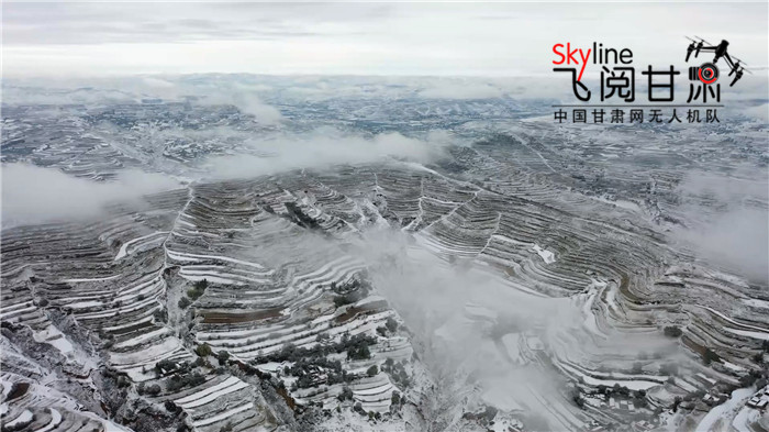 11月3日,定西境內(nèi)降雪,位于分水嶺一帶的高海拔地區(qū),梯田落雪,大地潔白。從空中俯瞰煙云縹緲,如走進(jìn)童話世界。(本網(wǎng)記者 宋芳科 通訊員王金生 )