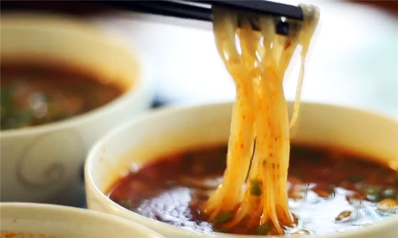 “下到鍋里蓮花轉(zhuǎn),挑上筷子一條線。走過七州與八縣,沒吃過這么好的面……”聽,歌謠里的唱的,不就是這碗來自靈臺縣的酸湯細(xì)長面嗎?