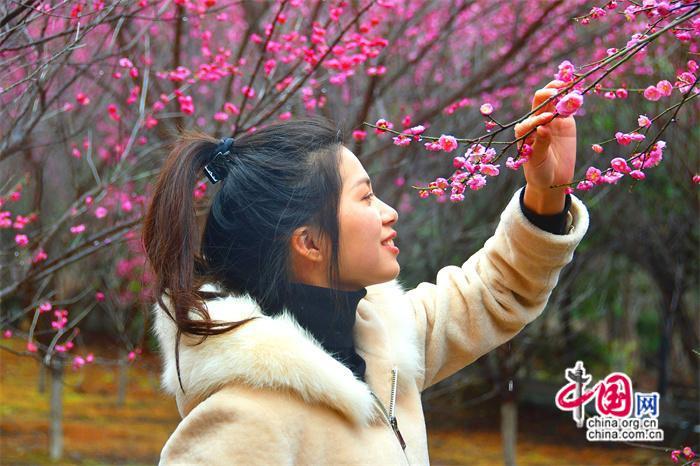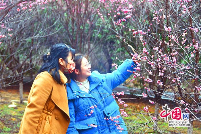 盛開的梅花散發(fā)著幽香,沁人心脾,吸引不少游客市民紛至沓來弄花探春。(劉佑祥 邱文麗 張海兵)