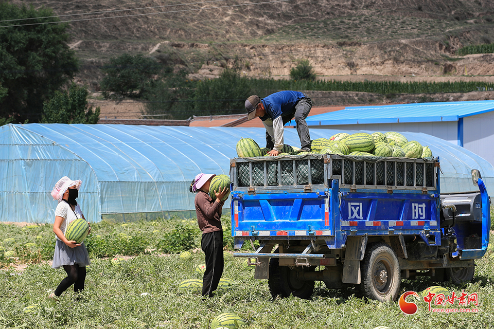 7月31日,甘肅省白銀市會寧縣土高山鄉(xiāng)種植的砂田西瓜喜獲豐收,瓜農(nóng)們忙著采收、搬運、裝車外運,“搶鮮”上市銷售。