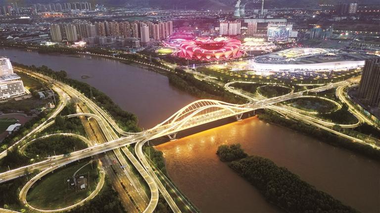 蘭州,不僅是“全國(guó)文明城市”“國(guó)家園林城市”“中國(guó)最具投資吸引力城市”“營(yíng)商環(huán)境創(chuàng)新城市”“最具文旅投資價(jià)值城市”,更成為了國(guó)內(nèi)最受歡迎的十大避暑城市之一和游客數(shù)量增長(zhǎng)最快的十大“網(wǎng)紅城市”之一。圖為深安大橋和奧體中心、萬達(dá)茂美麗夜景。