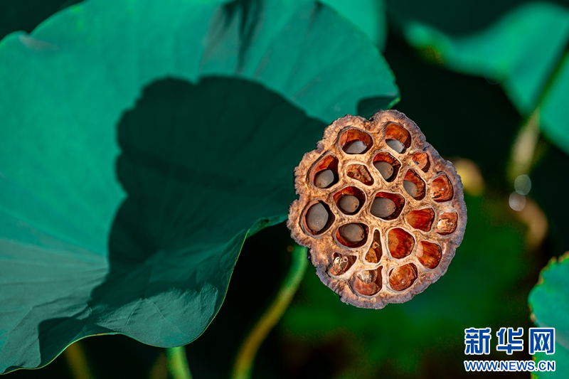 近日,在甘肅省白銀市白銀區(qū)水川黃河濕地公園,滿池荷花嬌艷、荷葉青翠,藍天、碧水、嬌花、翠葉構成了一幅秋日美景圖。新華網發(fā)(郭宏 攝)