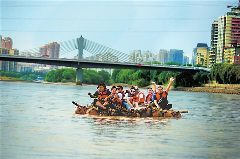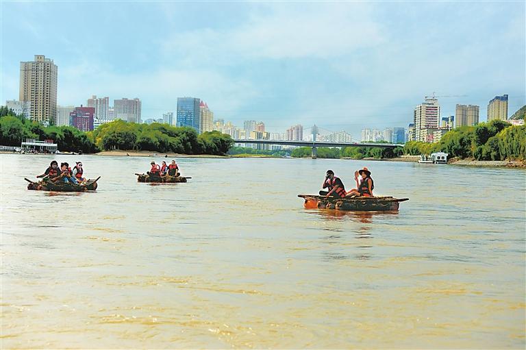 入秋以來,蘭州文旅市場(chǎng)持續(xù)火熱,不少游客前來旅游。9月14日,游客在黃河蘭州段乘著羊皮筏子漂流黃河,感受與母親河的“零距離”接觸。