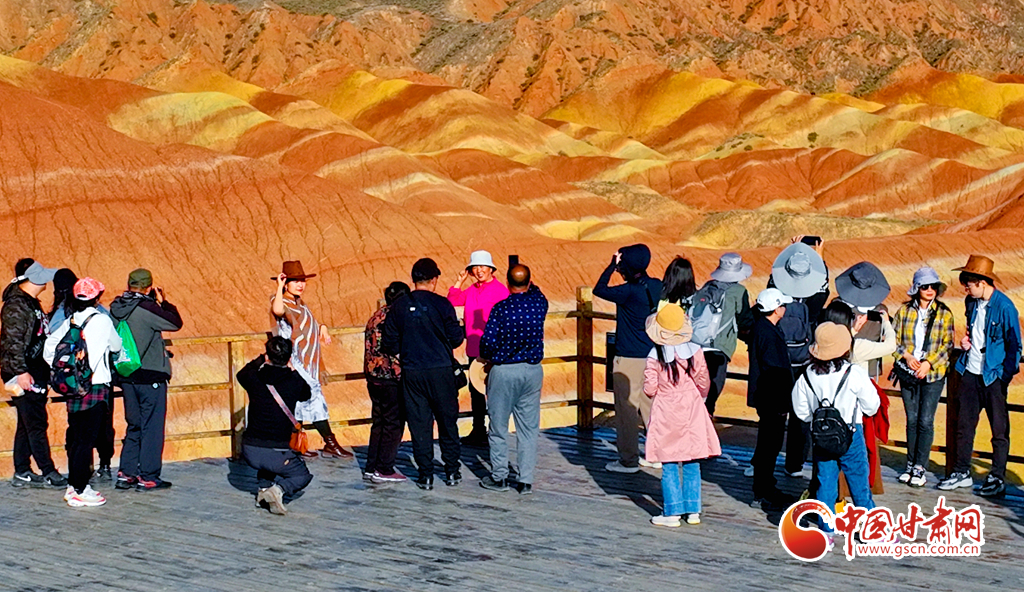 9月30日,甘肅張掖七彩丹霞景區(qū)內(nèi)人頭攢動,全國各地的游客紛至沓來,欣賞獨特的丹霞地貌,領(lǐng)略西北壯美景色。