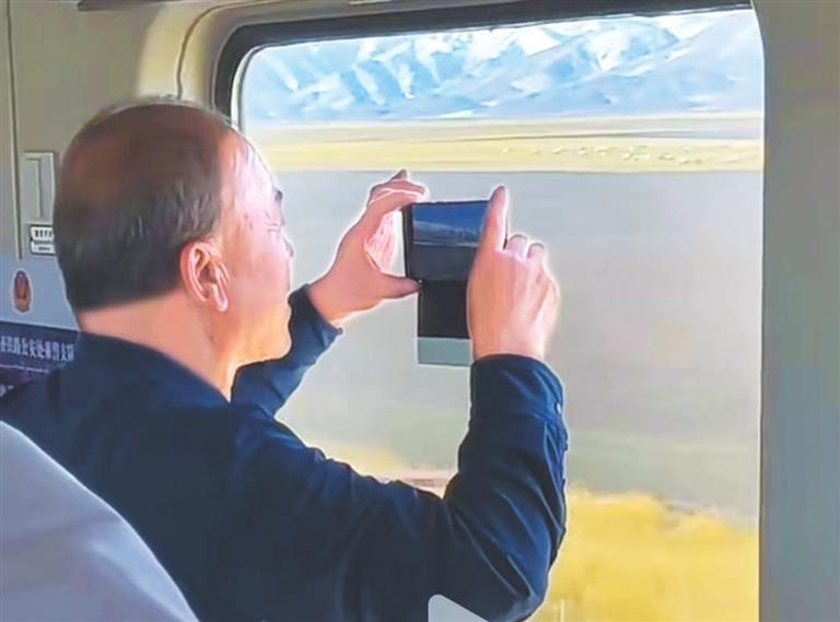 視頻中,一男子舉著手機(jī),透過車窗面對著藍(lán)天、雪山、草原情不自禁地抒情:祁連山下,各族兒女兩千多年來在華夏的文明史上書寫了鞏固民族大業(yè)、實(shí)現(xiàn)祖國統(tǒng)一、民族繁榮的恢弘歷史。朋友們,來張掖!感受兩千年的絲綢之路,感悟現(xiàn)代的動(dòng)車奔跑在祖國的大地上,讓中華在實(shí)現(xiàn)偉大復(fù)興的磅礴征程中恢弘勃發(fā)的新長征、新歷史。