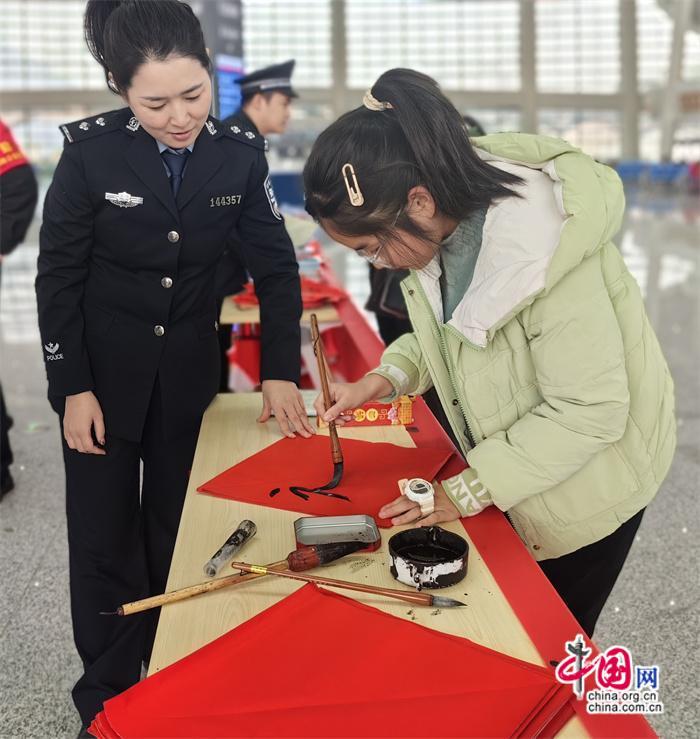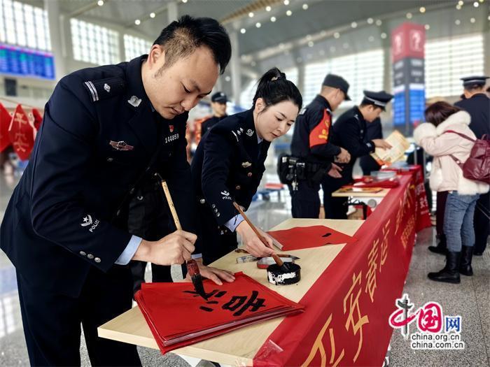 本次活動由莆田車站派出所牽頭組織,聯(lián)合中信銀行、莆田站共同開展?;顒悠陂g,民警與志愿者在莆田站甬廣場候車室為旅客發(fā)放高鐵安全宣傳單及春聯(lián),并由青年民警現(xiàn)場書寫春聯(lián)、福字送給來往旅客,將平安、溫馨傳遞給每一個人。