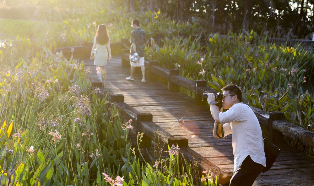 ↑游客在海南省瓊海市博鰲鎮(zhèn)留客村游覽拍照。新華社記者 楊冠宇 攝(資料圖片)