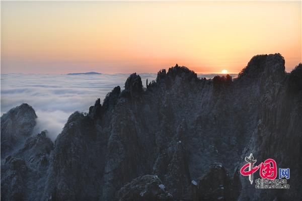 只有一個(gè)黃山:雪后日出、云海同現(xiàn) 美輪美奐