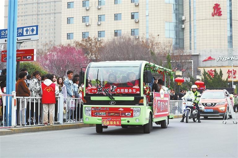 3月16日,游客乘坐免費(fèi)的“天水麻辣燙志愿服務(wù)車”前往景區(qū)。