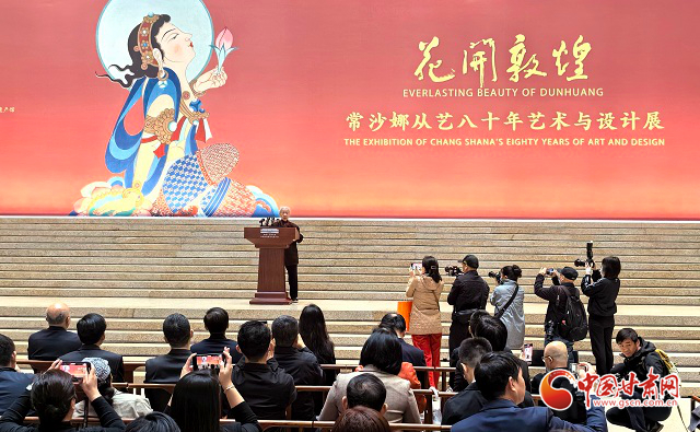 中國甘肅網(wǎng)4月30日訊(西北角·中國甘肅網(wǎng)記者 任磊)29日上午,“花開敦煌——常沙娜從藝八十年藝術(shù)與設(shè)計(jì)展”在中國工藝美術(shù)館盛大開幕。展覽匯聚了著名藝術(shù)教育家和藝術(shù)設(shè)計(jì)家常沙娜先生400余件代表性作品,既展現(xiàn)了她深厚的敦煌藝術(shù)傳統(tǒng)積淀,也彰顯了她為新中國藝術(shù)設(shè)計(jì)做出的杰出貢獻(xiàn)。