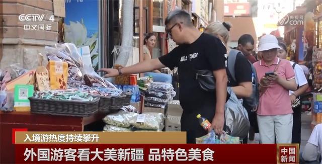 在位于烏魯木齊的新疆國際大巴扎,記者看到不少外國游客前來購物、品嘗特色美食。