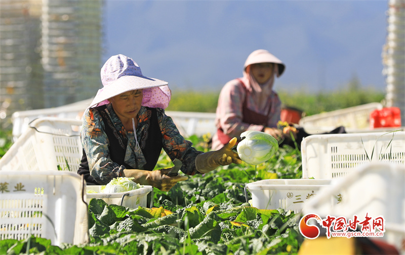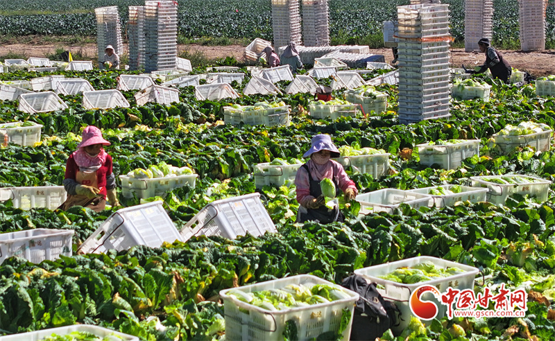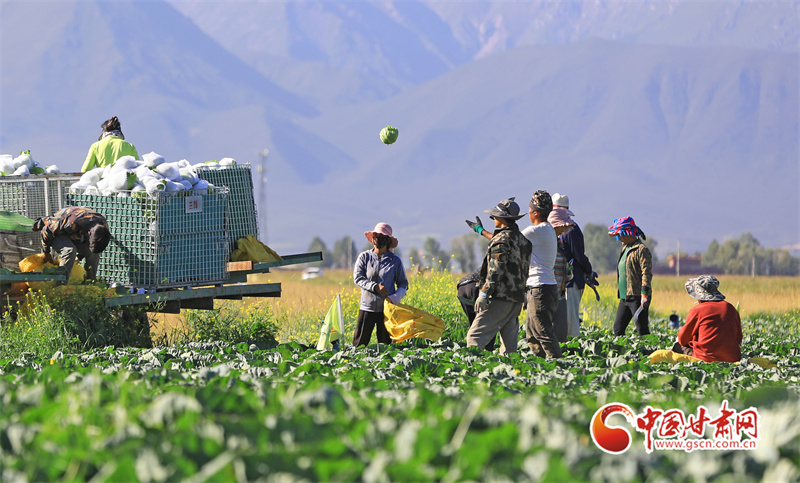 初秋,在民樂縣永固鎮(zhèn)八卦村高原夏菜種植基地,5000多畝娃娃菜、西蘭花、甘藍(lán)等高原夏菜已到收獲季,村民們正在忙著采摘、裝運高原夏菜。