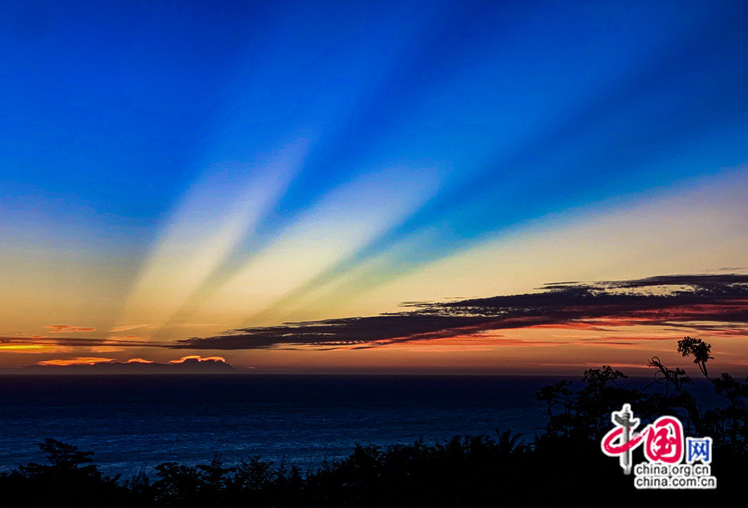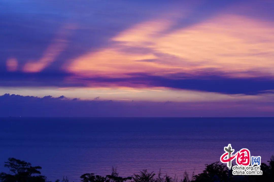 海南島西海岸線,北起儋州,南至樂東。儋州和臨高的海岸線朝向西北,并不正對西邊。從地圖上看,朝向正西方向的海岸線,應(yīng)該是從昌江棋子灣開始。確切地說,從棋子灣大角,海南島轉(zhuǎn)向了正西方向,直面海上落日。