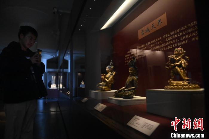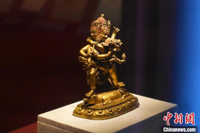 11月28日,甘肅省敦煌市,敦煌研究院敦煌石窟文物保護(hù)研究陳列中心《披沙揀金——敦煌研究院館藏文物擷英展》中的勝樂金剛像。該展由敦煌研究院主辦,2024年下半年煥新布展,展出了不同類型館藏文物,通過這些文物蘊含的豐富歷史信息,展現(xiàn)了敦煌文化的多元與包容,勾勒不同文明偕行共進(jìn)的歷史脈絡(luò)。中新社記者 李亞龍 攝