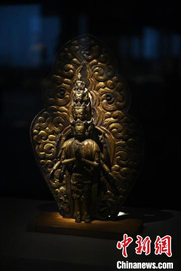 11月28日,甘肅省敦煌市,敦煌研究院敦煌石窟文物保護(hù)研究陳列中心《披沙揀金——敦煌研究院館藏文物擷英展》中的十一面觀音像。該展由敦煌研究院主辦,2024年下半年煥新布展,展出了不同類型館藏文物,通過這些文物蘊含的豐富歷史信息,展現(xiàn)了敦煌文化的多元與包容,勾勒不同文明偕行共進(jìn)的歷史脈絡(luò)。中新社記者 李亞龍 攝
