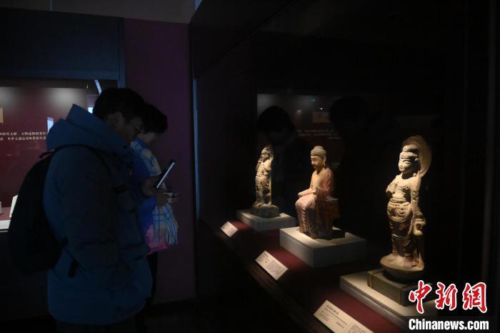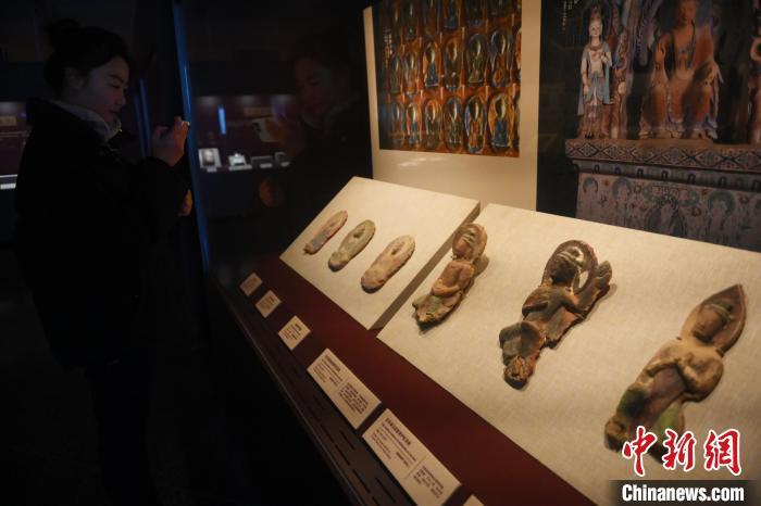 11月28日,甘肅省敦煌市,敦煌研究院敦煌石窟文物保護(hù)研究陳列中心,游人參觀《披沙揀金——敦煌研究院館藏文物擷英展》中的塑像。該展由敦煌研究院主辦,2024年下半年煥新布展,展出了不同類型館藏文物,通過這些文物蘊含的豐富歷史信息,展現(xiàn)了敦煌文化的多元與包容,勾勒不同文明偕行共進(jìn)的歷史脈絡(luò)。中新社記者 李亞龍 攝