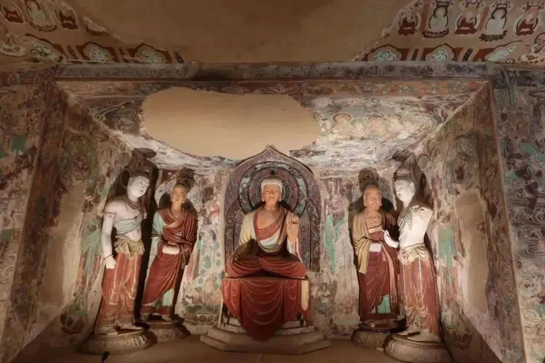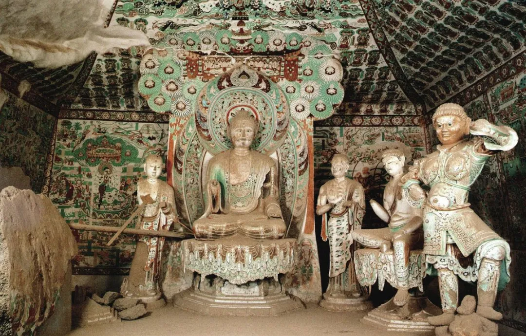 搬遷復(fù)原的洞窟內(nèi),不但保持了原來壁畫和塑像的原貌,洞窟內(nèi)的其他部位,如坍塌壁面也與洞窟原貌基本相同。從南湖店搬來的新建洞窟是磚混結(jié)構(gòu)的洞窟,我們對洞窟外墻面用礫石進(jìn)行裝飾,這樣洞窟與周邊崖壁、洞窟相一致。這兩個洞窟被安置在莫高窟北區(qū)大沖溝中,既不破壞和影響原有洞窟,又使其與周邊崖面和洞窟融為一體。如果不被提醒,人們?nèi)菀渍`認(rèn)為它們就是古代所建造的洞窟。