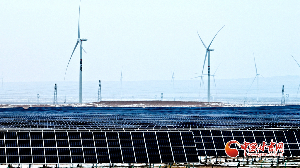 12月18日, 一場(chǎng)大雪過后,大漠深處的張掖市臨澤縣北部灘新能源產(chǎn)業(yè)園內(nèi),81.1萬(wàn)千瓦光伏治沙光伏集陣和85萬(wàn)千瓦風(fēng)力發(fā)電機(jī)組群,在防沙治沙的同時(shí)將光熱和風(fēng)力轉(zhuǎn)換為電能輸入國(guó)家電網(wǎng),推進(jìn)了“西電東送”輸電工程建設(shè)。