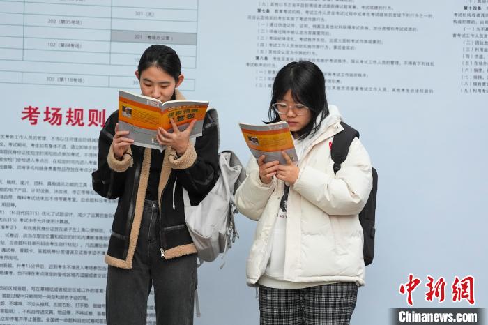 圖為考生在考場(chǎng)外復(fù)習(xí)。中新社記者 楊華峰 攝